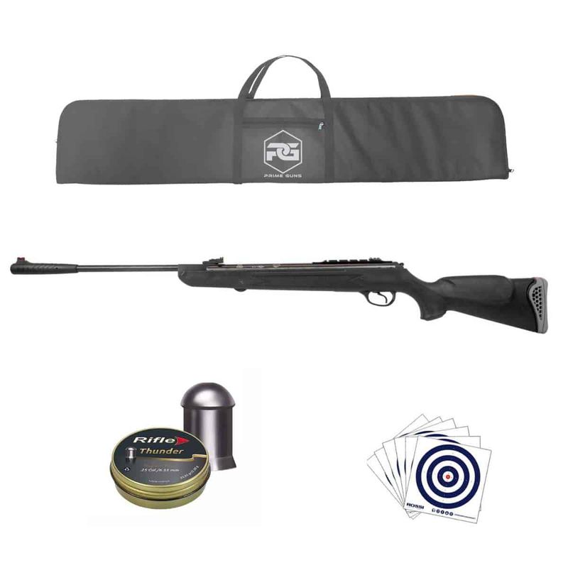 A Carabina de Pressão Hatsan 125 Sniper Vortex 6.35mm .25 + Capa dispara no modo Um a um com velocidade de 754fps - 230m/s e energia de 34,4 Joules Ver mais