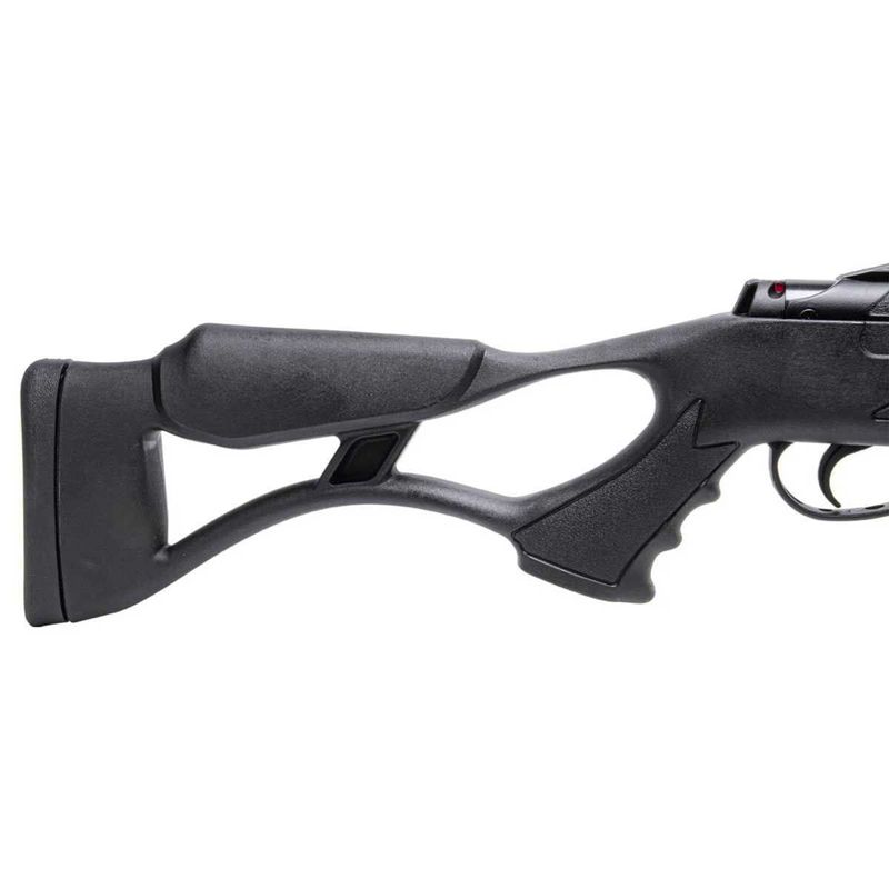 Fabricada toda em polímero de alta resistência, a HT Airtact PD 5,5mm possui uma abertura na coronha que facilita no basculamento do cano e a deixa com um visual muito mais tático e confortável.