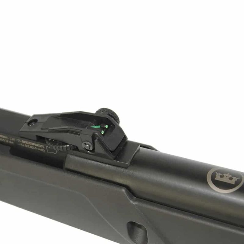 Com trava de segurança manual frontal, sistema de miras Tru-Glo com fibra óptica (alça regulável verde e massa fixa vermelha) e trilho duplo de 11mm e 22mm, permite a instalação de lunetas, red dots e outros acessórios com facilidade.