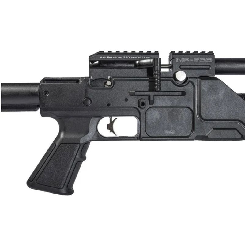 Combinando alto impacto com excelente precisão, a Carabina PCP Puncher NP-500 da Kral se destaca não apenas pelo visual tático, mas também pela impressionante energia de 38 Joules