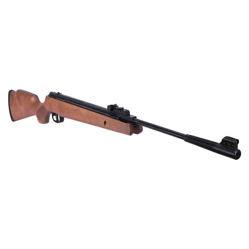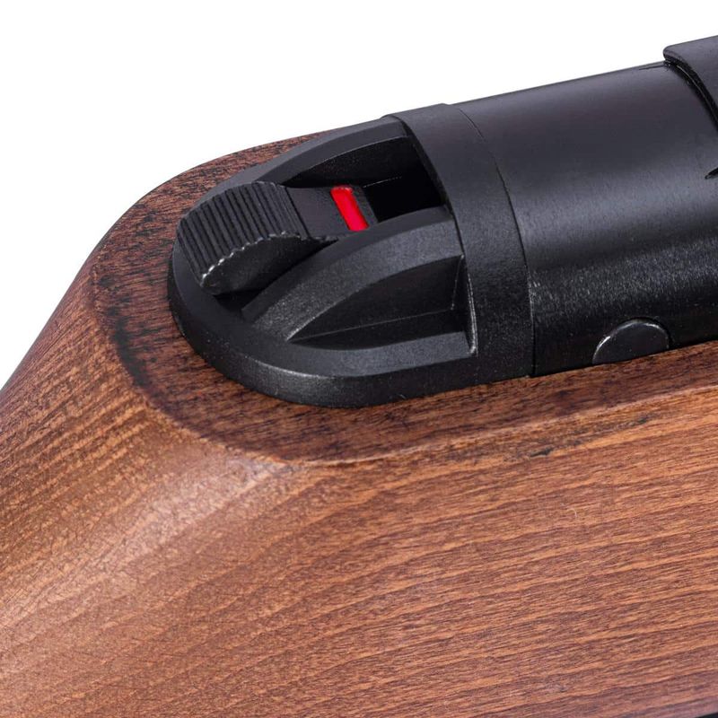 A carabina conta com soleira emborrachada de alta densidade, sistema de cano basculante para um disparo por vez, mira em fibra óptica ajustável e trilho de 11mm para montagem de luneta ou red dot. O cano é raiado em aço, e o gatilho é ajustável, oferecendo maior controle para tiros precisos.