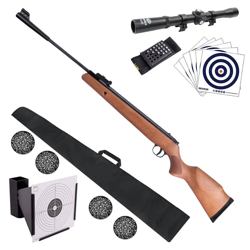 + Capa + 4 Latas de Chumbinho 5,5mm + Luneta 4x20 Eagle + Alvos + 1 Porta Alvo 14x14mm + 1 Porta Chumbinho