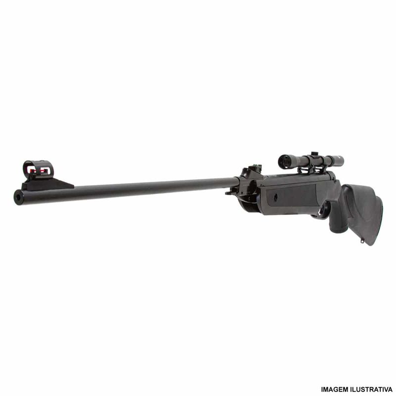 Com cano de metal de 480mm e acabamento oxidado, essa carabina possui coronha em polímero recartilhado com empunhadura ambidestra, encosto estilo Montecarlo e zarelhos para bandoleira. Conta ainda com porta chumbinho integrado.