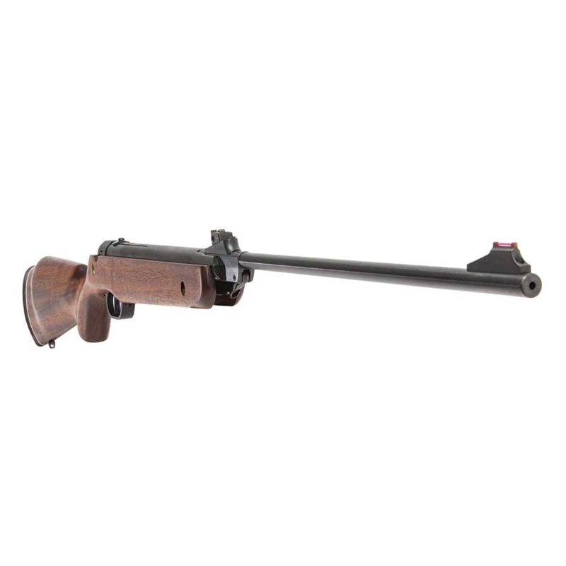 A carabina Nova Dione em madeira é fabricada no calibre 4.5mm (.177) e dispara chumbinhos a uma velocidade de 245m/s (mais de 800fps), com um alcance efetivo de mais de 30m. Por isso vai muito bem com uma luneta, aumentando ainda mais sua precisão a longa distância.