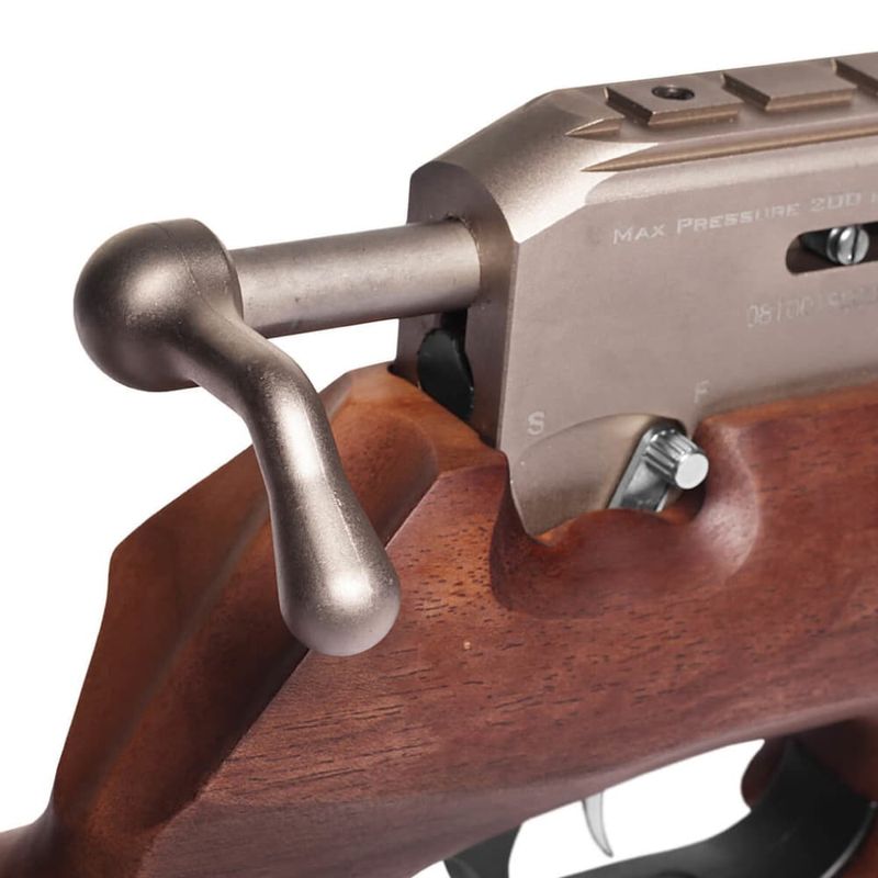 A segurança manual está localizada no lado direito do rifle e pode ser facilmente acionada.