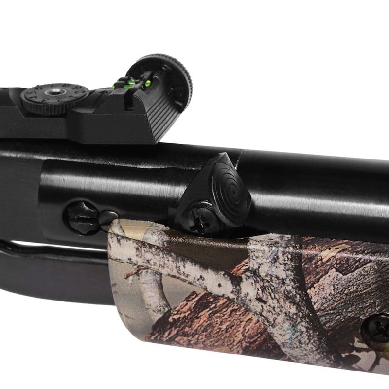 Com coronha ambidestra em polímero camuflado, traz excelente ergonomia e conforto. Conta com miras em fibra óptica, sendo a alça de mira regulável e massa de mira fixa com túnel de proteção. Ainda possui trilho de 11mm para instalação de acessórios como lunetas ou red dots.