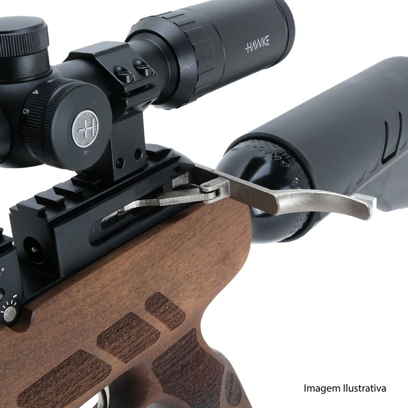 A Carabina de Pressão QGK Nilo 5,5mm .22 PCP dispara no modo Repetição (Ferrolho) com velocidade de 800fps - 244m/s e energia de 35 Joules Ver mais