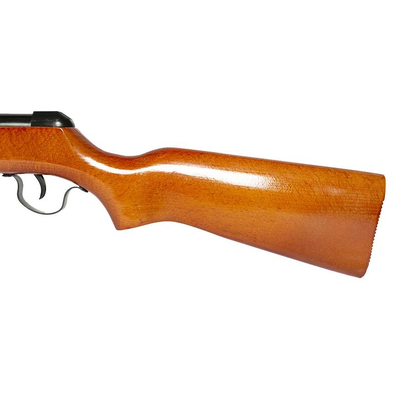 Fabricada em madeira de alta qualidade, a Carabina QGK MD-B 5,5mm .22 pesa 3kg muito bem distribuídos.