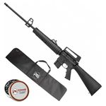 A Carabina de Pressão Rossi M16r Gás Ram 4,5mm .177 + Chumbinhos + Capa dispara no modo Um a um com velocidade de 1000fps - 305m/s e energia de 23 Joules Ver mais