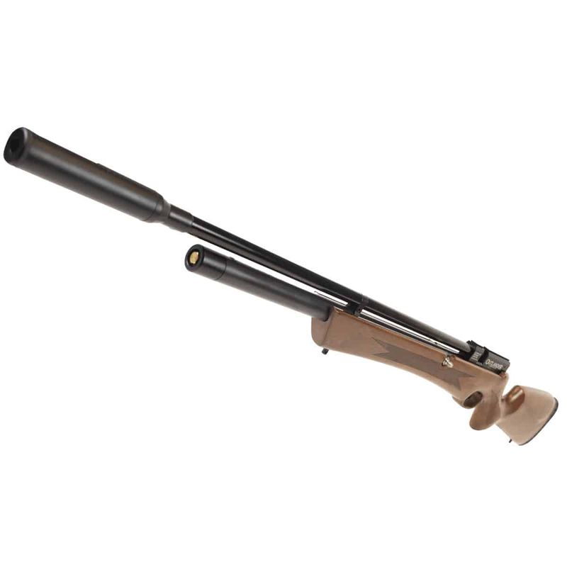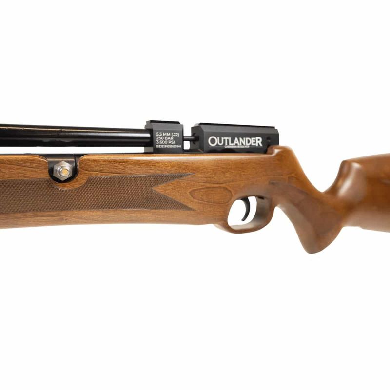 A Carabina de Pressão Rossi Outlander PCP 5.5mm Madeira + Compressor dispara no modo Repetição (Side Lever) com velocidade de 1148fps - 350m/s e energia de 61,2 Joules Ver mais