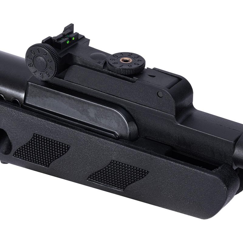 O design ergonômico é evidente na soleira emborrachada, proporcionando conforto durante o disparo ou prática prolongada. Com um peso aproximado de 2,3kg, essa carabina é extremamente leve, o que significa que você poderá aproveitar por mais tempo sem se sentir cansado.