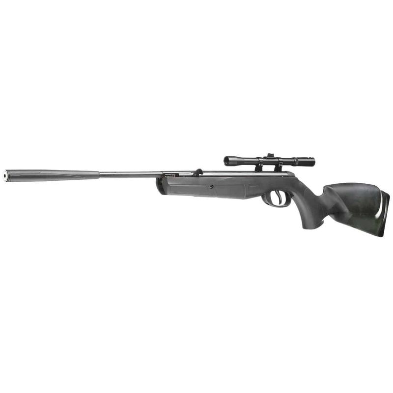 Uma carabina esportiva confiável, barata e robusta. Com sistema de pressão da mola do cano de freio, cano raiado e trilho de prisma de 11 mm. Em conjunto com mira telescópica 4x20.