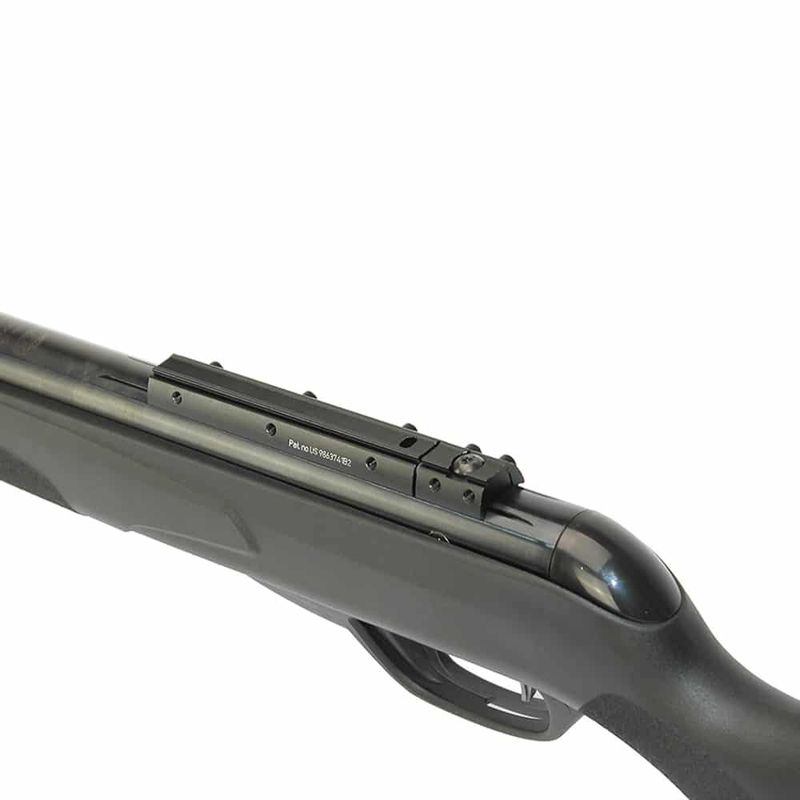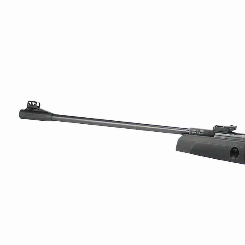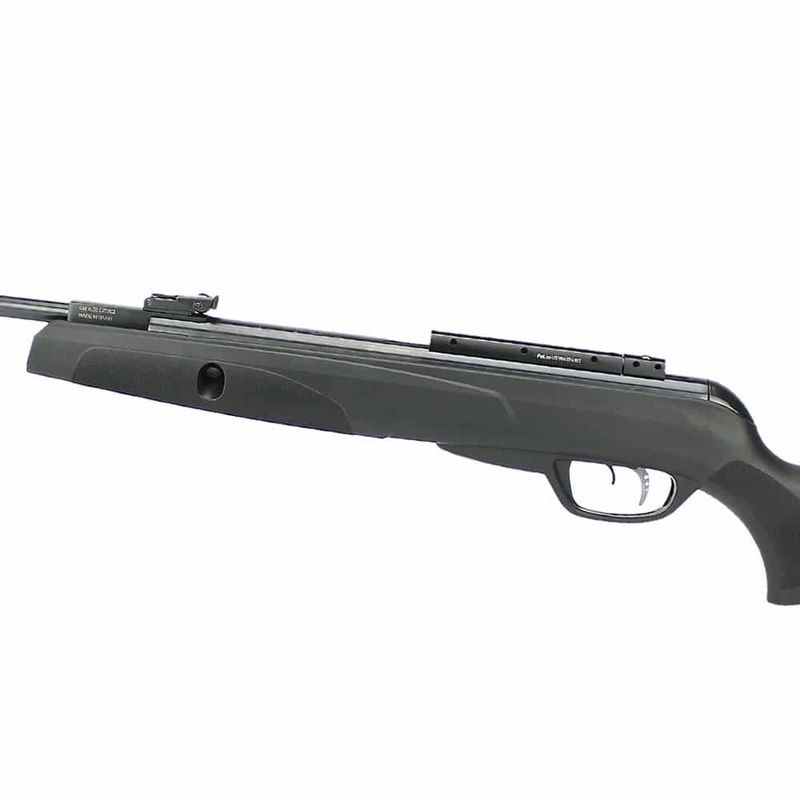 A Carabina Gamo BlackKnight possui sistema de tiro por cano basculante, permitindo atirar um chumbinho por vez