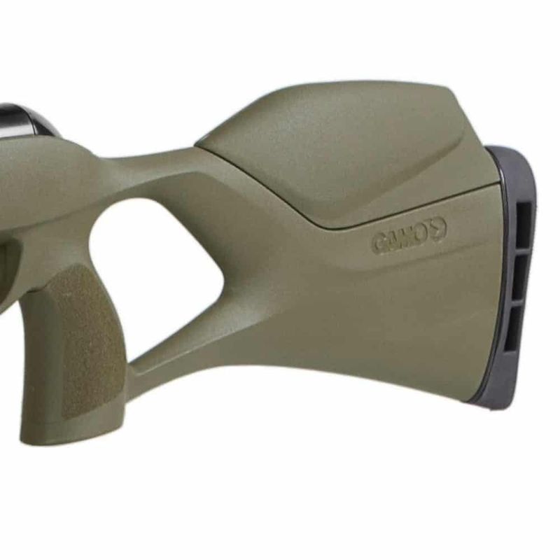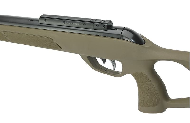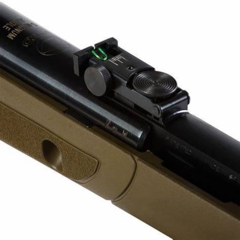A ação da Gamo G-Magnum 1250 Jungles se dá pelo cilindro Gás RAM inerte, com sistema de engatilhamento por basculamento do cano metálico montado em bloco de polímero de alta densidade.