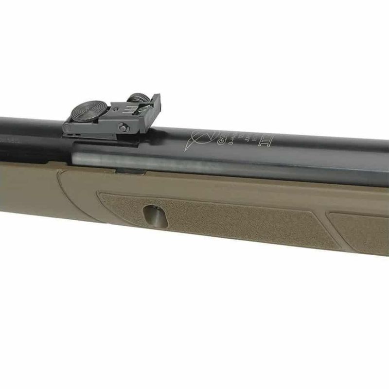 A ação da Gamo G-Magnum 1250 Jungles se dá pelo cilindro Gás RAM inerte, com sistema de engatilhamento por basculamento do cano metálico montado em bloco de polímero de alta densidade.