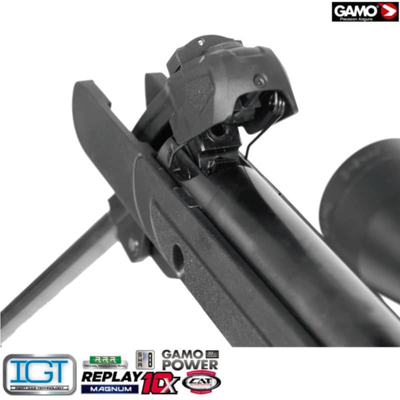 A carabina Gamo 1250 Replay 10x Magnum da Gamo é uma carabina de pressão de alto desempenho que apresenta a tecnologia 10x Quick Shot GEN1 da Gamo, tornando-se a arma de ar de cano com quebra de multishot mais poderosa já criada.