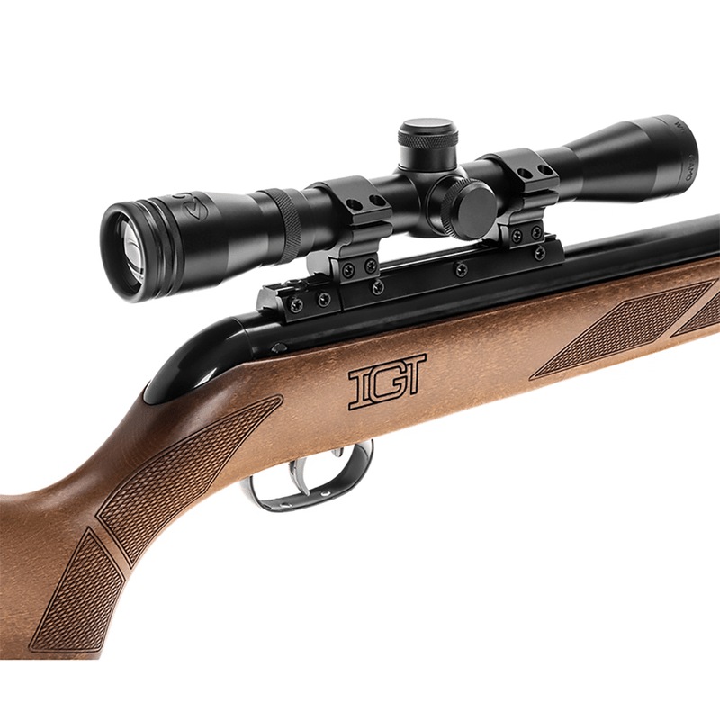 A Gamo Hunter Maxxim IGT é uma carabina de última geração com coronha de madeira de faia que combina uma linha tradicional com a mais avançada tecnologia desenvolvida pela Gamo: cano moderador de som Maxxim, sistema de pistão IGT, trilho RRR e gatilho CAT e visor incluído.