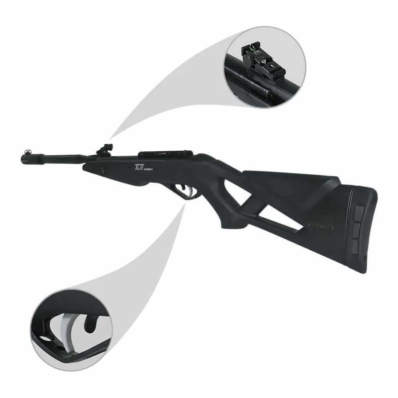 Devido ao sistema de Mola Gás Ram (pneumática), a Gamo Fusion possui sistema de tiro manual, com cano basculante