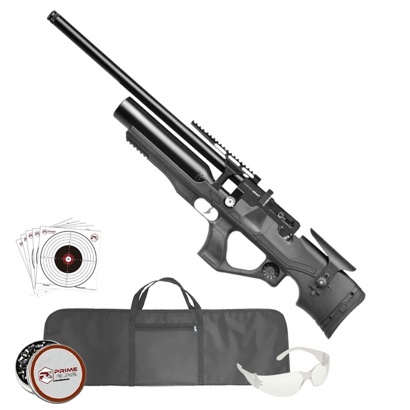 A carabina acompanha 3 magazines rotativos de 12 chumbinhos cada, case rígido e bipé, tornando-se um conjunto completo e pronto para uso imediato.