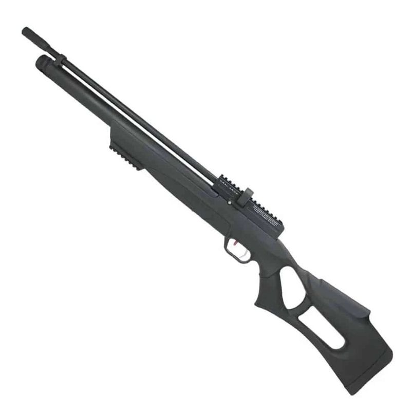 O cano micro raiado de alta qualidade e acabamento oxidado assegura agrupamentos precisos e consistentes. A coronha thumbhole em polímero de alta resistência proporciona empunhadura ergonômica, controle superior e conforto nas longas sessões de tiro.