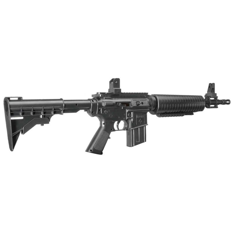 O rifle de pressão Crosman M4-177 de bombeamento é baseado no mundialmente famoso rifle militar M4A1 (AR-15) e vem no calibre 4,5mm.