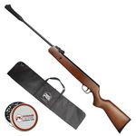 Com 24 joules de força, a Carabina Black Hawk Wood 4.5mm tem alcance na casa do 60m