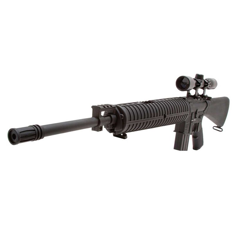 A Carabina Nitro Crosman MTR77 M16 Gás Ram Luneta + Capa dispara no modo Um a um com velocidade de 200fps - 61m/s e energia de 25 Joules Ver mais