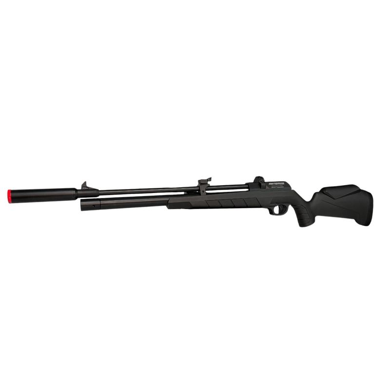 A Carabina PCP Artemis PR900S G3 Black 5,5mm .22 dispara no modo Repetição (Ferrolho) com velocidade de 950fps - 289m/s e energia de 35 Joules Ver mais