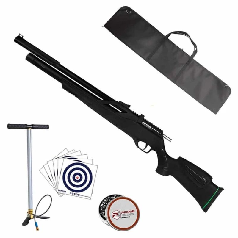A Carabina PCP Artemis T-REX 4,5mm .177 Polímero + Bomba dispara no modo Repetição (Ferrolho) com velocidade de 1050fps - 320m/s e energia de 35 Joules Ver mais