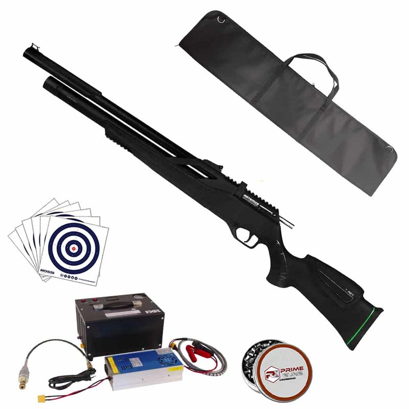 A Carabina PCP Artemis T-REX 4,5mm .177 Polímero + Compressor dispara no modo Repetição (Ferrolho) com velocidade de 1050fps - 320m/s e energia de 35 Joules Ver mais