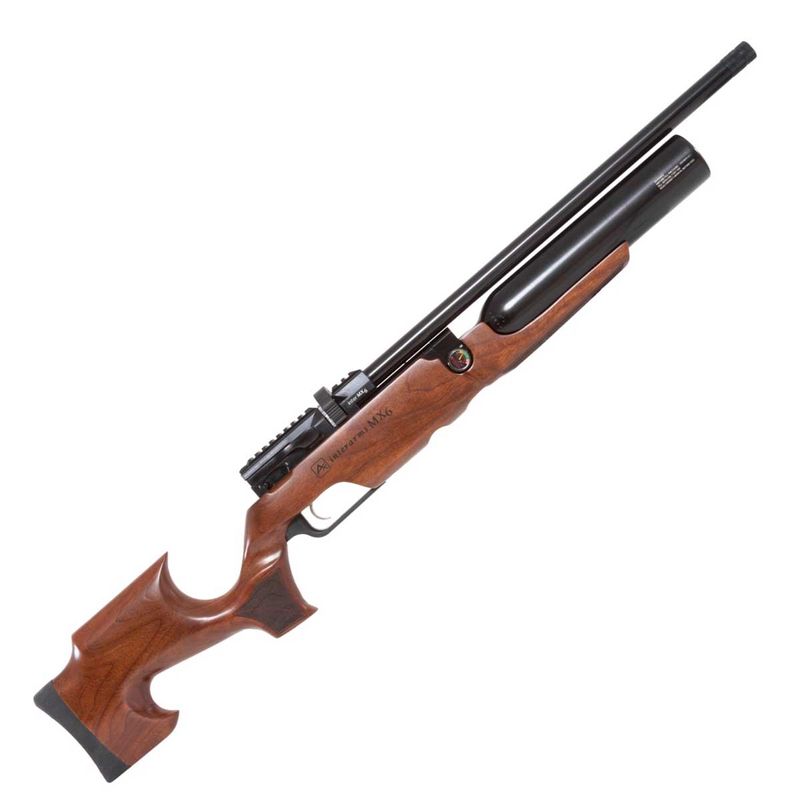 Uma obra de arte! A Carabina PCP MX6 5,5mm .22 Matte Black Wood da Aselkon conta com válvula reguladora de pressão, gatilho ajustável e um carregador com capacidade para 12 chumbinho!