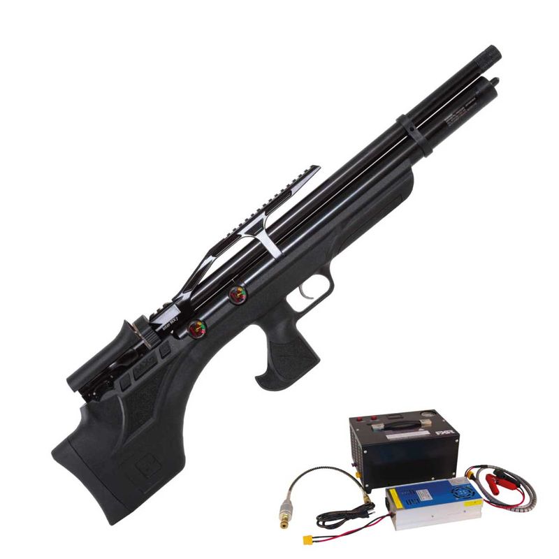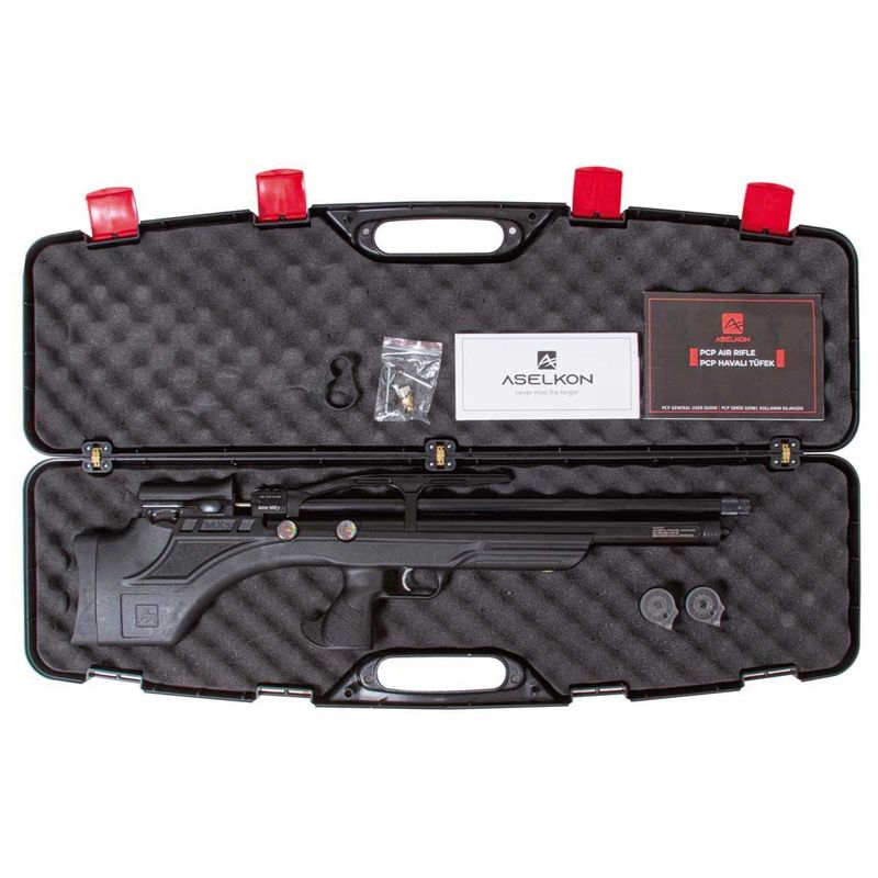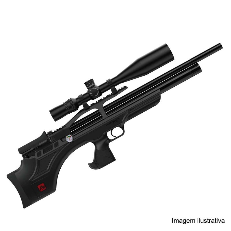 Uma obra de arte! A Carabina PCP MX7 BullPup Synthetic da Aselkon conta com válvula reguladora de pressão, gatilho ajustável e um carregador com capacidade para 12 chumbinhos!