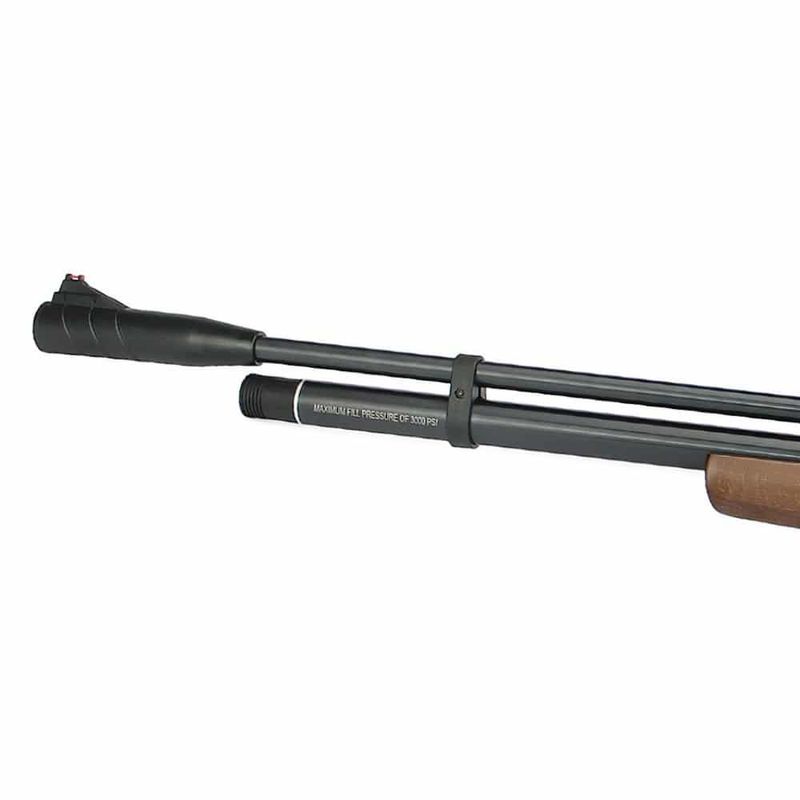 Seu cilindro de 136cc de capacidade e 200 BAR de pressão permite que a PCP Beeman 1338 seja facilmente recarregada com bomba manual, elétrica ou cilindro scuba. Seu cilindro garante uma autonomia entre 35 e 50 disparos por recarga, atentando-se ao limite mínimo de 50 BAR de pressão para facilitar a recarga.