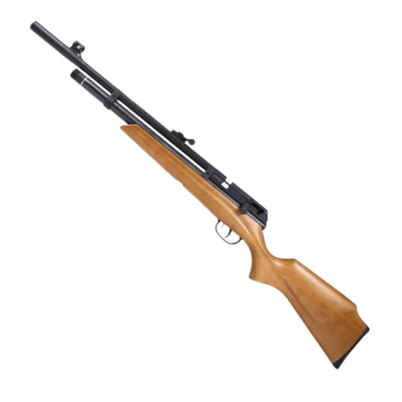Sua coronha em madeira laminada oferece aderência superior e conforto em disparos prolongados. O cano micro raiado de 490 mm garante estabilidade na trajetória e menor dispersão.