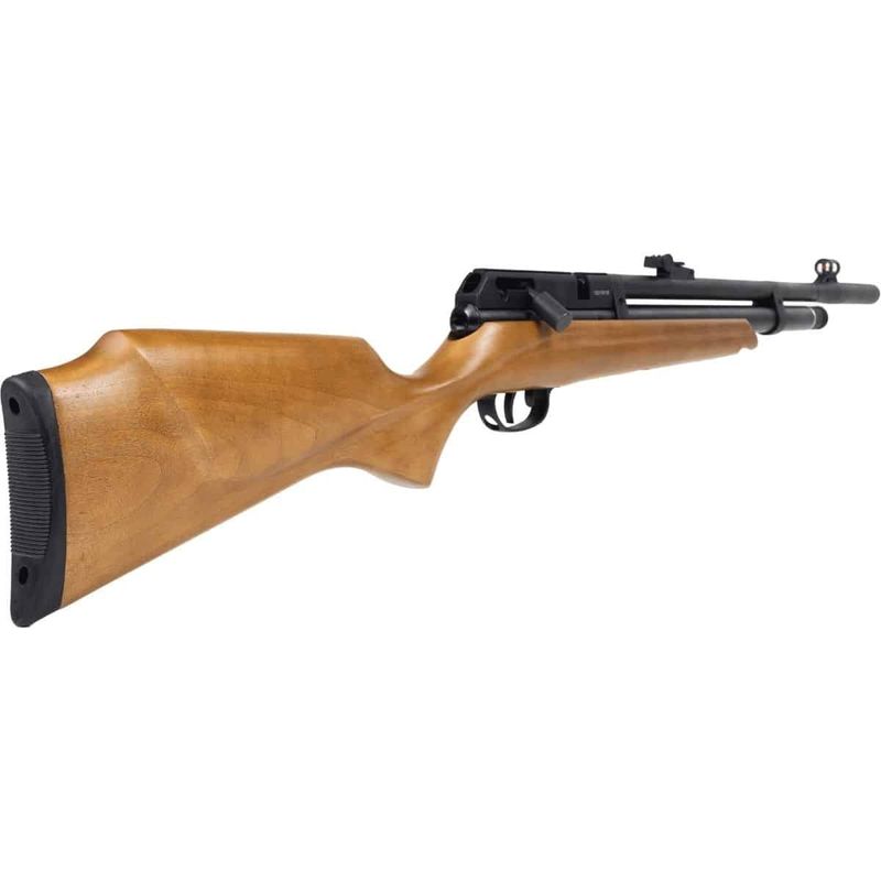 Construída com materiais de alta qualidade, sua coronha em madeira proporciona não apenas uma estética elegante, mas também uma empunhadura confortável e estável. O acabamento liso confere um toque de sofisticação, enquanto o design ambidestro da empunhadura garante conforto para destros e canhotos.