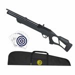 A Carabina PCP Chumbinho .25 6.35mm Hatsan Flash Syntetic Kit dispara no modo Repetição (Ferrolho) com velocidade de 870fps - 265m/s e energia de 54 Joules Ver mais