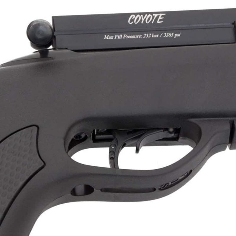 Fabricada em polímero automotivo e cano em aço forjado, a carabina de pressão Gamo Coyote Whisper PCP tem qualidade e elegância com peso equilibrado.