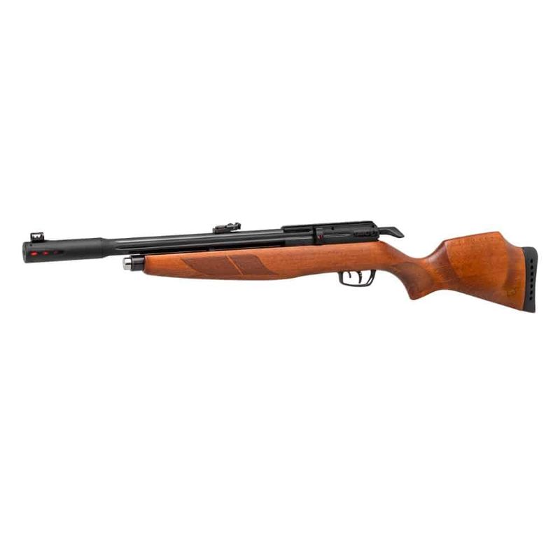 A Gamo Riser Punisher Madeira Whisper tem incríveis 360m/s, equivalente a 1181fps com chumbinhos calibre 5,5mm (.22)