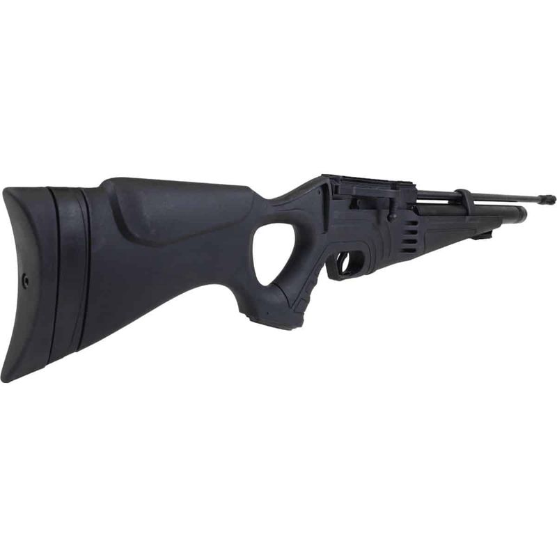 Design e Ergonomia: O design da Hatsan Flash 101 Regulada foi cuidadosamente pensado para oferecer o máximo de conforto e controle ao atirador. Sua coronha, fabricada em polímero de alta resistência, possui um acabamento tático e é ambidestra, adaptando-se perfeitamente tanto para destros quanto para canhotos. A empunhadura do tipo Montecarlo fixo, com abertura thumbhole, proporciona uma pegada firme e confortável, essencial para manter a precisão em tiros de longa distância. Além disso, o trilho Picatinny de 11mm e 22mm permite a instalação de uma ampla gama de acessórios, como lunetas, bipés e lanternas, tornando a carabina extremamente versátil.