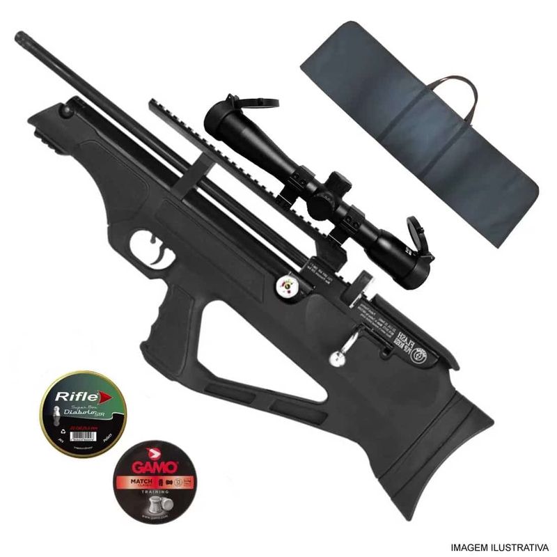 + 125 Chumbinhos Rifle STR 5,5mm .22 + 125 Chumbinhos Gamo Match 5,5mm .22 + Luneta 4x32 + Capa Reforçada