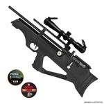 A Carabina PCP Hatsan FlashPup Black 5,5mm + Luneta dispara no modo Repetição (Ferrolho) com velocidade de 970 fps 295 m/s e energia de 42 Joules Ver mais