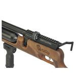 Seu cilindro de ar de 500cc suporta até 250 BAR, entregando aproximadamente 49 disparos úteis por recarga no calibre .30. Com trilho Picatinny de 22mm, permite instalação de lunetas, red dots ou miras ópticas.
