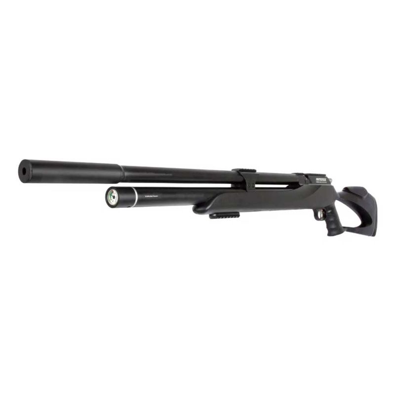 Com cilindro de ar comprimido de 250 BAR, regulador interno e manômetro embutido, a autonomia é de cerca de 70 disparos por recarga.