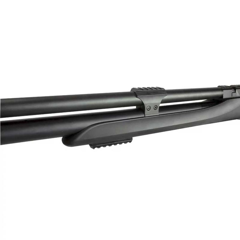 O modelo conta com supressor de som e air stripper integrados, garantindo mais estabilidade e conforto acústico. Seu sistema de engatilhamento tipo Side Bolt Inox é robusto e fácil de operar, com encaixe traseiro que melhora a empunhadura e repetição dos tiros.