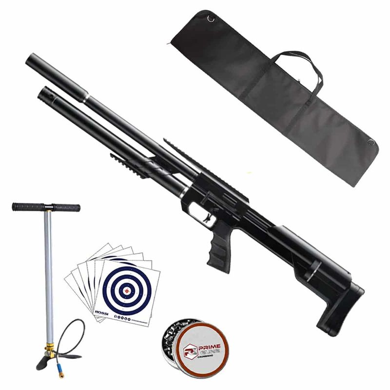Com estrutura robusta e coronha ajustável, seu peso de 3,7kg proporciona estabilidade e controle durante os disparos.