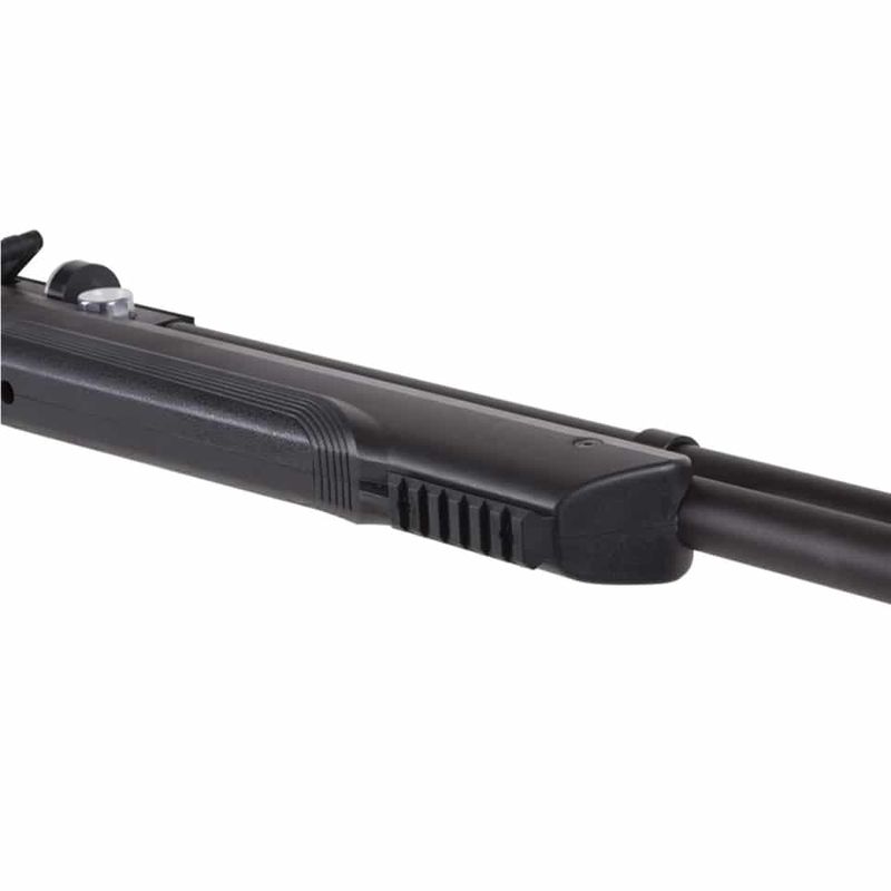 Possui também uma soleira de borracha para absorção de impacto e aumento do conforto na empunhadura, mas por ser uma arma PCP, seu recuo é confortável e delicado.