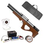 A Carabina PCP P15 Killer Artemis 5,5mm .22 BullPup Madeira + Compressor dispara no modo Repetição (Side Lever) com velocidade de 970fps - 296m/s e energia de 45 Joules Ver mais