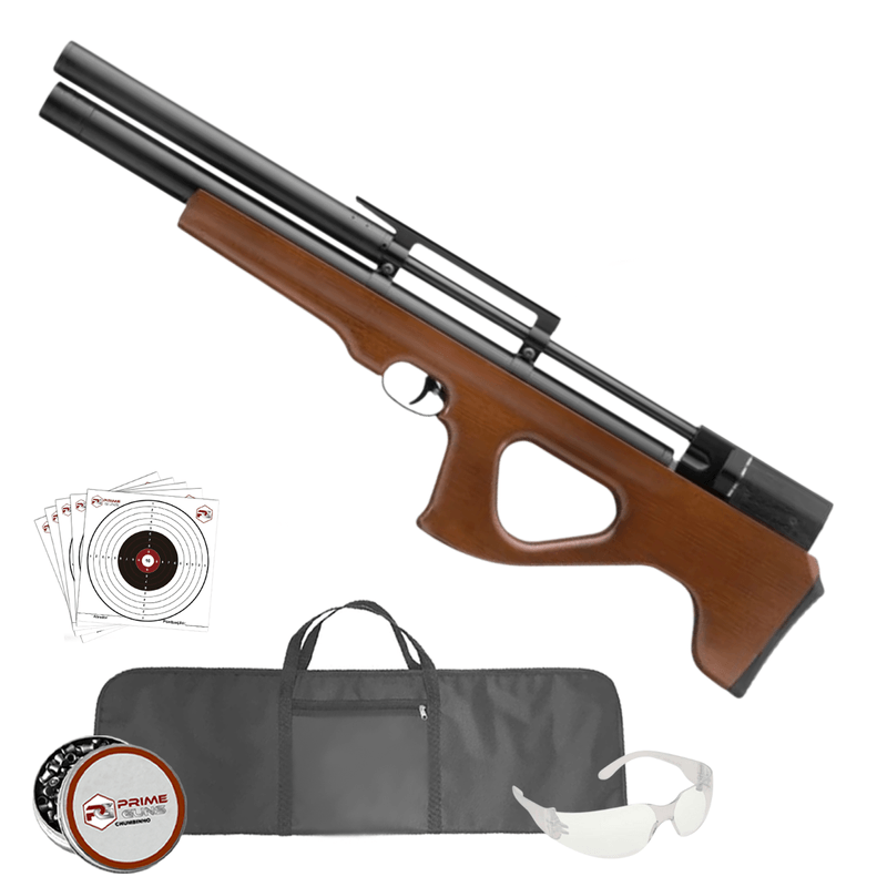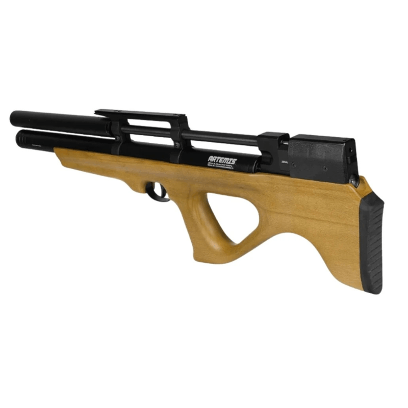 A Carabina PCP P15 Killer Artemis 5,5mm .22 BullPup Madeira Kit dispara no modo Repetição (Side Lever) com velocidade de 970fps - 296m/s e energia de 45 Joules Ver mais