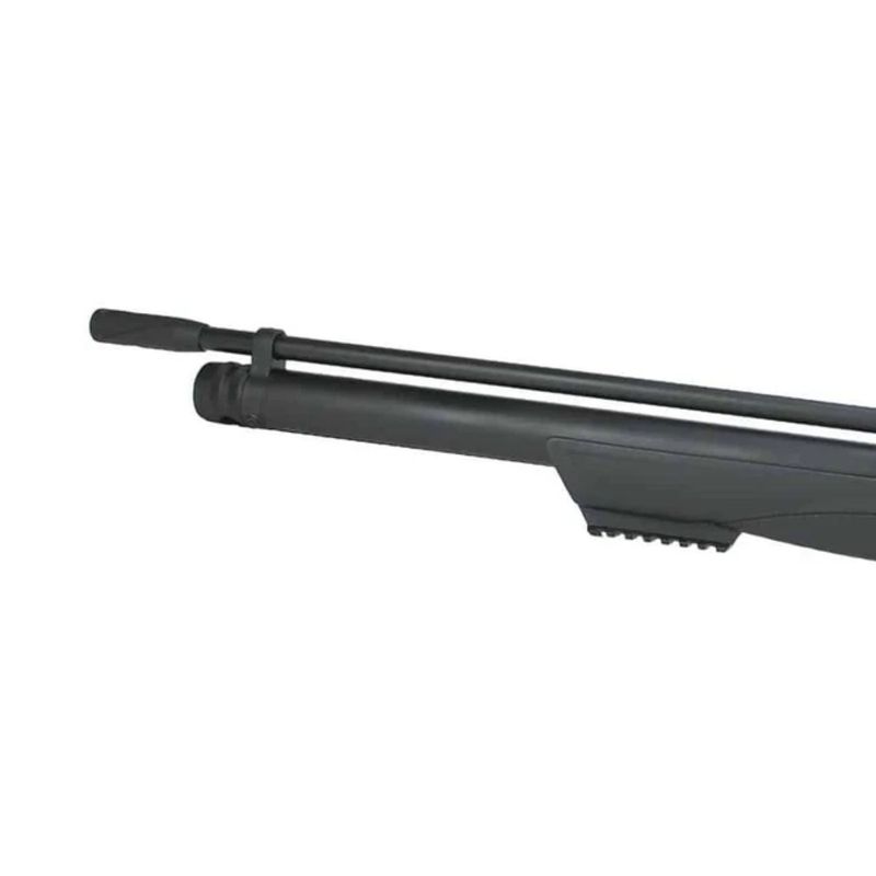 Com trilhos 11 mm e 22 mm, a arma é totalmente compatível com lunetas de competição e acessórios premium.