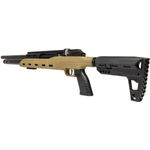 A coronha em polímero leve e resistente, ambidestra e retrátil, assegura conforto, leveza e empunhadura firme.